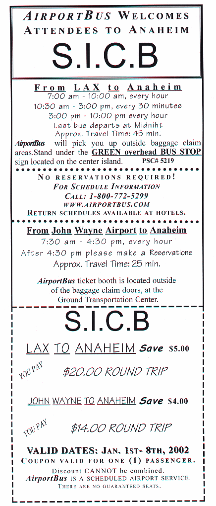 Coupon for reduced airport ground transportation fare now available from this website. Click here to open coupon in a separate window, print out and take along to the meeting.