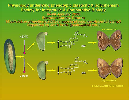 The topic of the symposium will be the mechanisms by which organisms develop multiple phenotypes from single genotypes. The genetics and possible adaptivity of plasticity have been recent topics of interest. The physiology underlying plasticity, in contrast, has received less attention, despite the fact that this level of organization might reveal more general patterns. The symposium would include talks both on the physiology of plastic phases (probably adaptive) and the physiology of canalized phases (probably contraining adaptation). Talks that demonstrate the mechanisms by which organisms switch from plastic to canalized development are of the greatest interest, because they reveal crucial switch-points in organismal development.