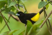 Tanagers are from a large family of birds (Thraupidae), which has about 380 species that range from small- (4 in.) to medium-sized (11 in.), and that come with a kaleidoscopic palette. Predominantly found in the tropical parts of Central and South America, well-studied members include Darwin’s finches from the Galapagos Islands. But unlike the famously drab birds that enraptured Darwin, tanagers are inordinately colorful. They’ve got some feathers that are abyssal black, arranged spots that are well-paired with patches of colorful feathers: crimson reds, highlighter yellows, or creme soda oranges on different body parts and in different species. Overall the contrasting effect is striking: one little bird with audacious apparel.