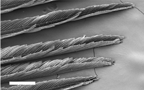Using highly sensitive microscopes, McCoy looked at the ends of feathers to see how they differ between males and females. Individual feathers are made up of many barbs protruding off a central support, called a rachis. And each barb itself is made of many barbules protruding off the central structure of the barb. (A) A close-up of feather barbs with barbules of a female tanager. Note their fine, thread-like appearance. (B) – (C) Barbules of male feathers from different species of tanagers. The microstructure, or fine-scale shape of these barbules is very different in male tanagers than in female tanagers or other species of birds. They can be spiky, flat, broad, and even angled. These differences make light interact differently with feathers and their pigments, changing how bold they appear. Images courtesy of Dakota McCoy.