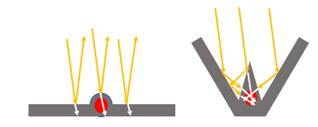 (A) A close-up of the feather microstructures shows the characteristic V-shaped angles that the barbules make, as opposed to lying flat. (B) Light that strikes feathers (yellow lines) without barbule microstructures will exit without interacting with the underlying pigment (red dot) as much, and therefore seem less vibrant. (C) In colorful feathers, the shape and angle of these microstructures change how light (yellow lines) interacts with the pigments at the base of the barbules (white lines with the red dot), making the exiting light seem richer and brighter than pigment alone. In super black feathers, the microstructures trap light by bouncing it back and forth among the barbules, allowing only some to come back out of the feathers and to be seen. Images courtesy of Dakota McCoy.