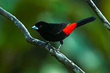 It seems like birds can do it all: they can sing, they can dance, and according to Twitter, they can even play peak-a-boo. In many birds, the brightest, flashiest feathers are expected to adorn the best mates, with showy males trying to attract choosy females. Now, according to new research, we’ve found some species have a different kind of designer flair to accessorize their fanciful feathers. Males in some species of tanagers (genus Rhamphocelus) have gained physical changes to their feathers that make their colors seem brighter and bolder. Harvard graduate student Dakota McCoy’s recent work suggests this haute couture may be a way for male tanagers to enhance their looks, changing ho-hum hues into super colors1.